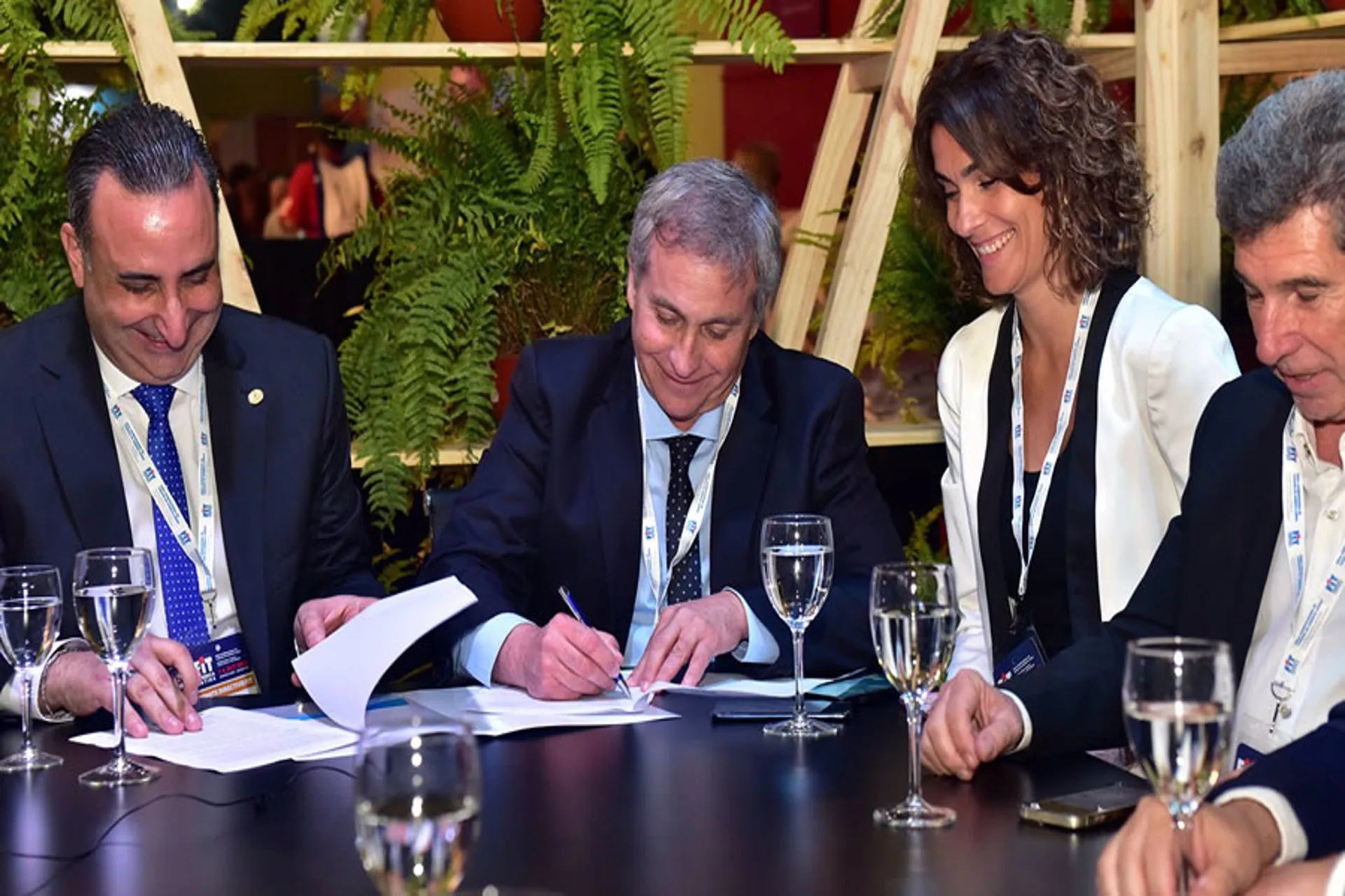 Participaron del acto, que se llevó a cabo ayer en el stand de FEHGRA en FIT, los vicepresidentes de la Federación Florencia Landivar y Rafael Miranda; el vicepresidente de FAEVyT Andrés Deya (en la Feria, Hani anunció que será su sucesor); el vicepresidente de la Cámara Argentina de Turismo en representación de FEHGRA, Daniel Suffredini; el presidente y el vicepresidente de la Asociación de Hoteles, Restaurantes, Confiterías y Cafés de la Ciudad de Buenos Aires, Daniel Prieto y Carlos Alberto Yanelli; y Nolberto Pezzati, entre otras autoridades.