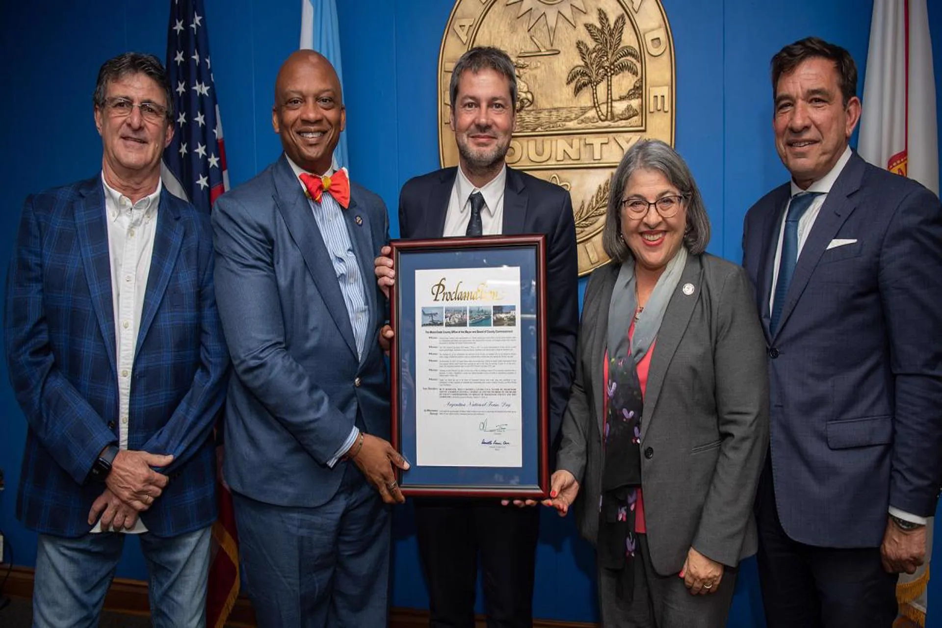 Durante su estadía en Estados Unidos, el ministro mantuvo un encuentro con la alcaldesa del condado Miami-Dade, Daniella Levine Cava, acompañada por Ralph Cutie (director el Aeropuerto Internacional de la ciudad) y Hydi Webb (directora del Puerto de Miami), en la cual además recibió una proclama en homenaje al título mundial obtenido por la Selección Argentina de fútbol masculino.