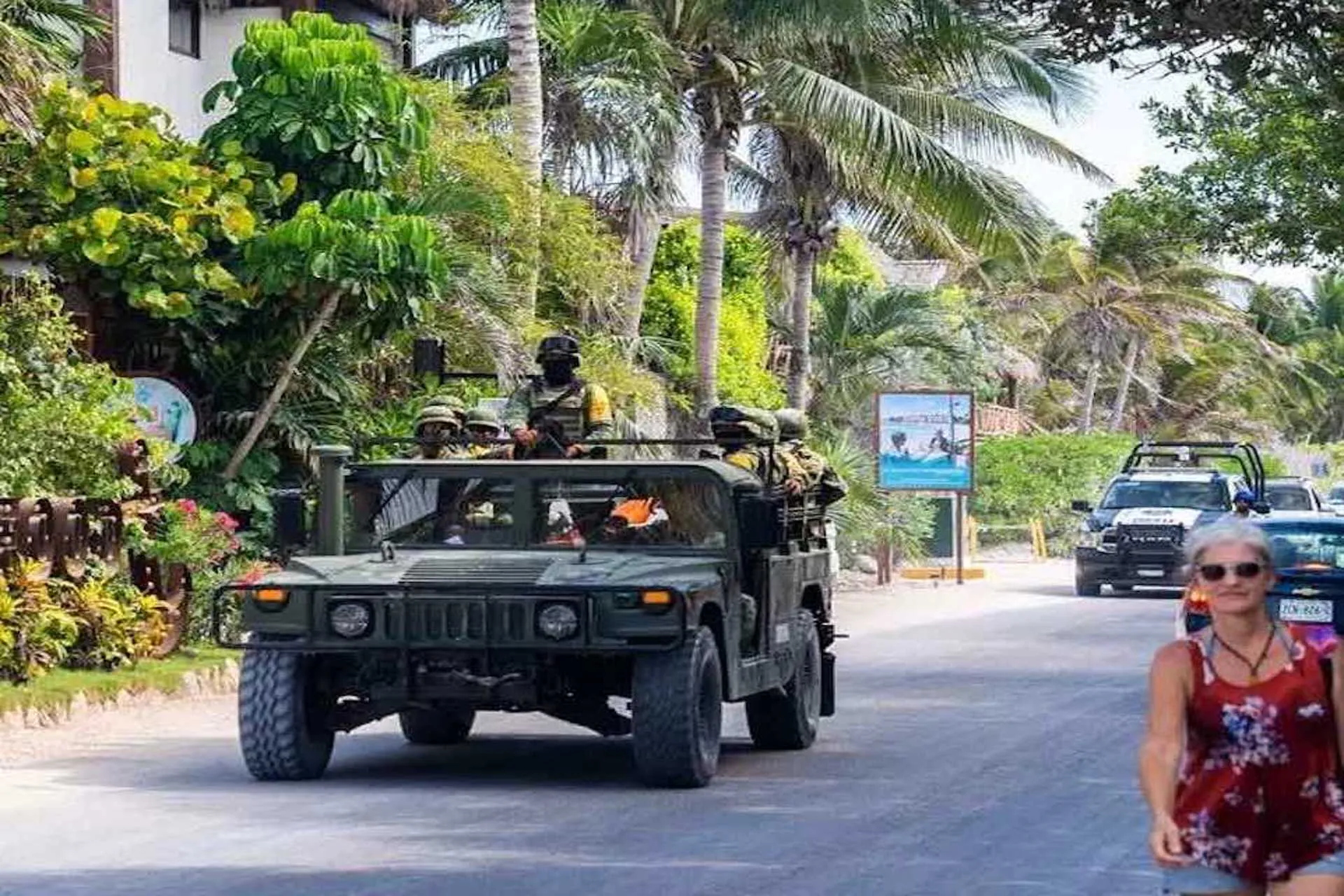 Los viajeros que visitan Tulum en los días siguientes pueden ver a oficiales de la Guardia Nacional Mexicana patrullando en las playas, caminando o montando en vehículos todo terreno, y en otras zonas turísticas populares.