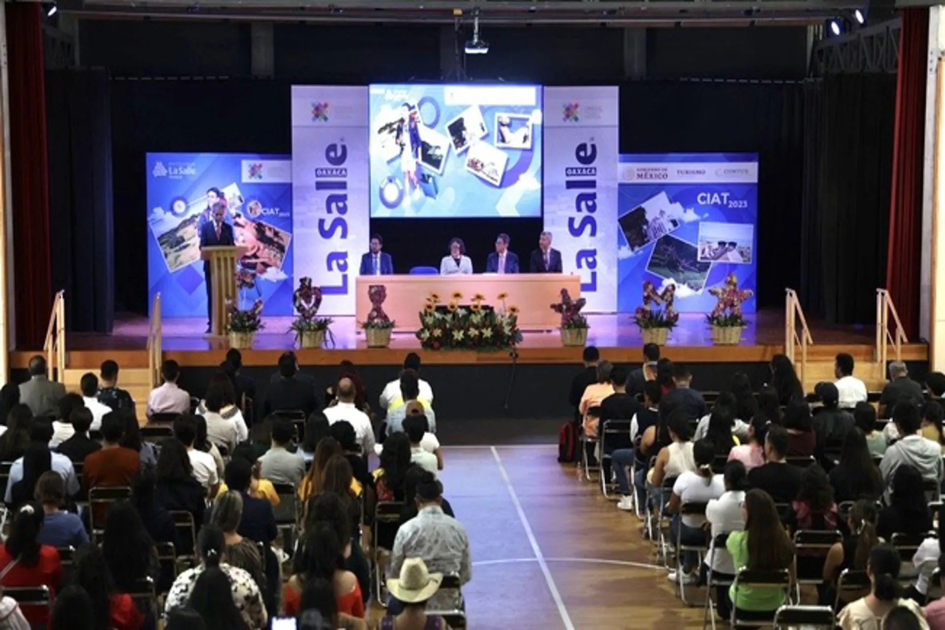 En la inauguración del CIAT 2023 también participaron Irma Burgos Valencia, jefa de Difusión y Profesionalización de Sectur; Sergio Estuardo García Herrera, director general Académico de la Universidad La Salle Oaxaca; Guillermo Moreno Calvo, director de la Escuela de Ciencias Económico Administrativas de la Universidad de La Salle Oaxaca; entre otros.