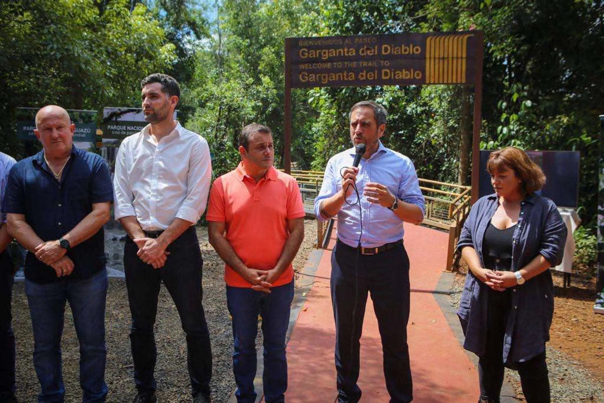 El titular de la cartera de Ambiente y Desarrollo Sostenible, Juan Cabandié, el gobernador de Misiones, Oscar Herrera Ahuad, y el presidente de la Administración de Parques Nacionales (APN), Federico Granato, encabezaron el acto de reapertura y ampliación de las pasarelas del circuito Garganta del Diablo, en las Cataratas del Iguazú, y presentaron mejoras de infraestructura en el área protegida; todo ello con una inversión $ 880 millones.