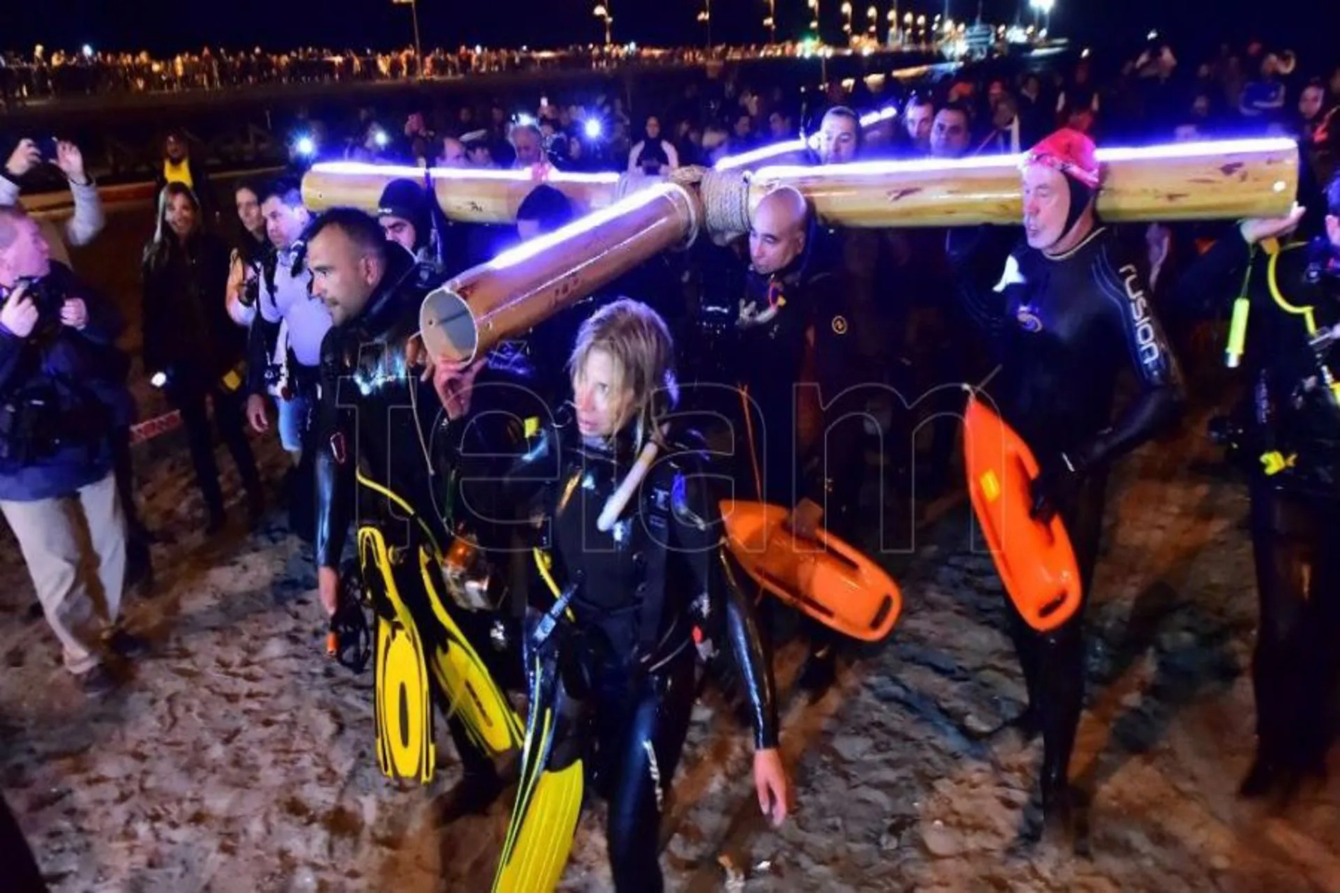 La actividad, que se desarrolla una parte por tierra y otra bajo el mar, tiene como protagonistas principales a los buzos que portan la cruz, acompañados en la superficie por nadadores, remeros y diversas embarcaciones sin motor que dan un clima de espiritualidad en el que se combina lo religioso con la naturaleza.