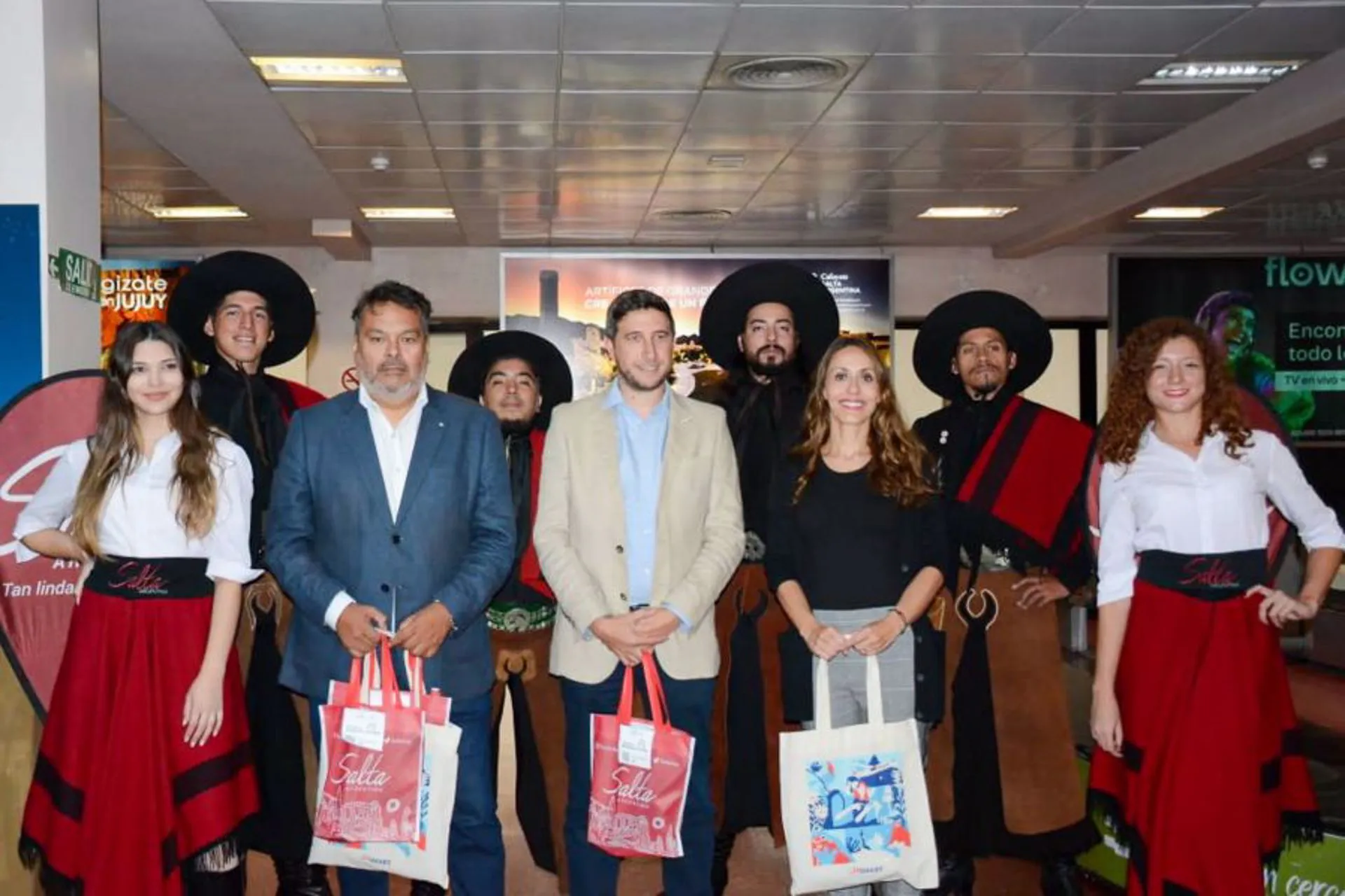 La subsecretaria de Promoción de Salta, Laura Alcorta recibió el vuelo de JetSmart en el que llegaron el gerente comercial de la compañía, Darío Ratinoff y el director de la Agencia de Córdoba Turismo, Gustavo Peralta.