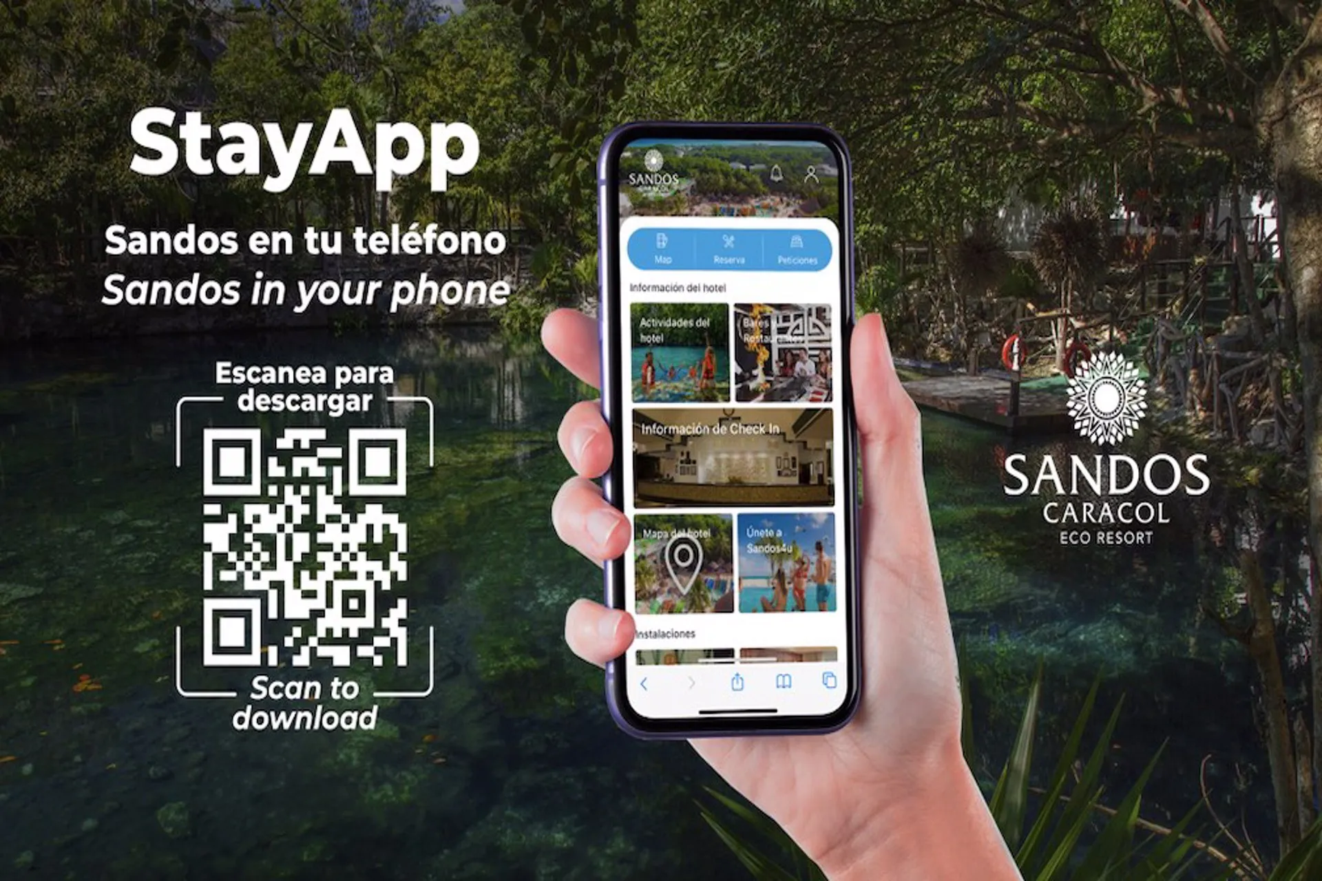 En un esfuerzo por mejorar la experiencia de todos los huéspedes que viajan y se hospedan en Sandos Caracol Eco Resort, el complejo ha presentado la aplicación Sandos Stay. A través de varias funciones, los huéspedes que se alojen en el resort tendrán un acceso más fácil a los servicios del hotel, todo desde sus dispositivos inteligentes: teléfono, tableta y computadora portátil.